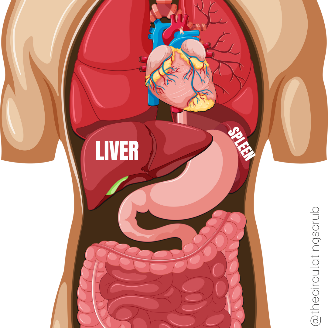 Florida does not require certification for the surgical techs which they employ, and through a quick search, it doesn’t appear that the hospital where it happened does either. Was the surgical tech certified? Was the first assist certified? Did they have a formal education which would have included anatomy? I remember learning about each organ in significant detail in both A&P courses and in the surgical tech courses. I can’t imagine not questioning what was going on. In a laparoscopic procedure the surgeon usually stands on the opposite side of where the organ is and that’s often how I base my own set up (back table, mayo, etc). If I would have been prepared for the surgeon to come in and stand on the patient’s RIGHT side while he operated on an organ that is positioned in the patient’s LEFT side, and they came in and did the opposite, I would be very concerned and verifying the procedure. I would ask if the scans showed his spleen was displaced, etc. Below is an image of the ‘normal’ location of some of the organs, notice the spleen and the liver vary significantly in size, they are on opposite sides of the abdomen, and slo have other organs directly beside them (gallbladder is literally attached to the liver and the stomach and the spleen are very close neighbors).